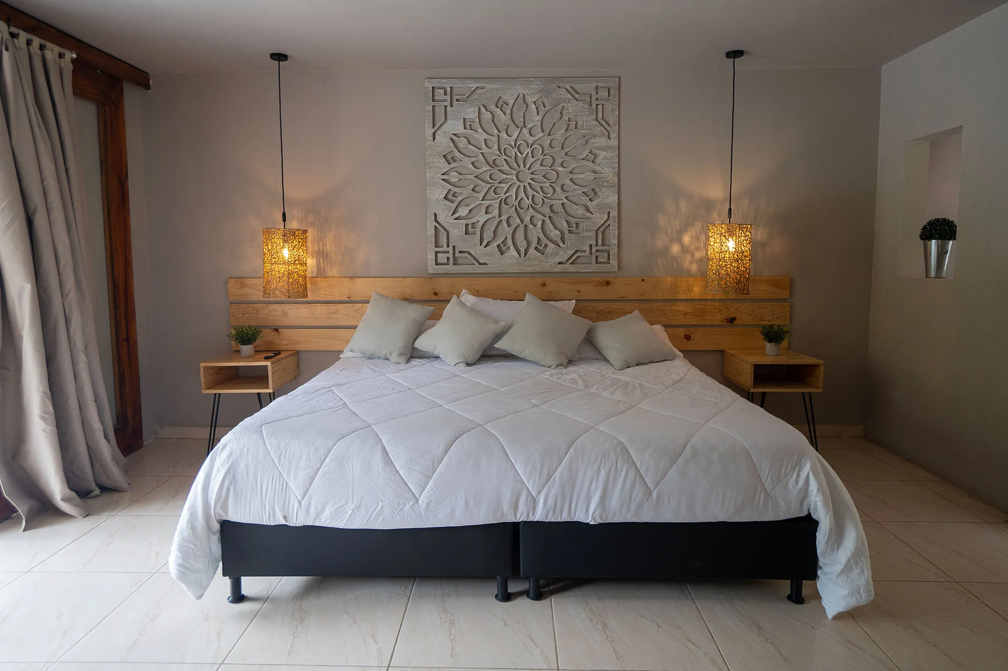 Encuentra 3 habitaciones totalmente equipadas y una cabaña independiente.